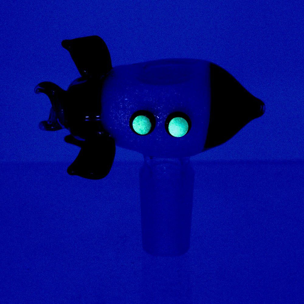The Space Cruiser Bowl Piece by Empire Glassworks features artistic lampwork melted on borosilicate glass. This stellar slide is designed on a 14.5mm male joint, infused with dichroic glass just like the rea detail that fires this piece to life. Lets take a cruise into the cosmos..