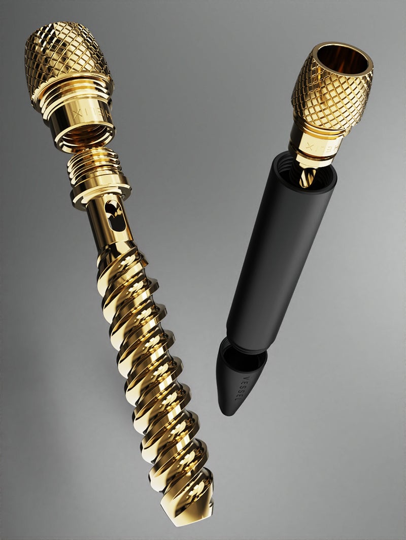 ![Two sleek Helix [Matte Black] pens are displayed on a gray background. Both are engraved with VESSEL; one is uncapped, and the other has a textured gold Helix cap.](https://cdn.cannabox.com/wp-content/uploads/2026/03/26114236/Helix_Matte_Black_2_800x1064_ab25659a-b7af-46b1-a65d-e1c05586bca2.jpg)